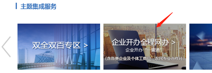 访问山东省政务服务网http://zwfw.sd.gov.cn,在首页——主题集成服务——点击企业开办全程网办模块。