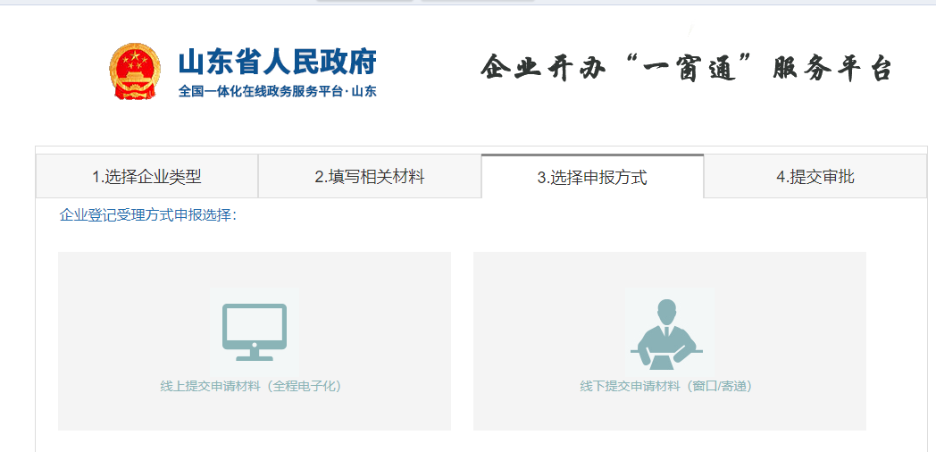 选择申报方式并提交审批,等待登记机关材料指导(推荐全程电子化申报方式)。