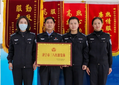 济宁市为民服务中心公安窗口(济宁市公安局许可服务处)活跃着的十余名年轻警花,她们组成了公安窗口亮丽的风景线,她们是巾帼岗位上的年轻代表,是警营里绽放的铿锵玫瑰,在平凡的岗位上热情服务、兢兢业业、无私奉献,在许可服务处这个温暖的大家庭里一起抒写她们的青春,散发年轻的光芒,彰显女性的时代风采。她们共同致力于打造“办事效率高、服务质量优、群众获得感强”的公安一流服务环境,树立公安良好形象。在她们的共同努力下,每年度,公安窗口均被评为“红旗窗口”,孙琳琳、曹欣、董艳红、李娟、郑文文等多名同志被评为“服务标兵”,因牵头市局“放管服”改革工作突出,其所在集体被评为“2021年济宁市优化营商环境工作先进集体”。