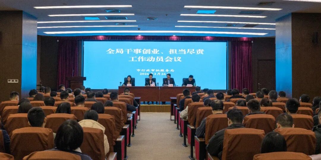 开局即攻坚,起步就提速!新春伊始,省市相继吹响干事创业、担当尽责的冲锋号角,鲜明释放“干字当头、勇争一流”的强烈信号。2月26日下午,市行政审批局召开全局干事创业担当尽责工作动员会议,深入贯彻落实省市决策部署,动员全体干部职工收心归位、凝神聚力,从“假期模式”全面切换“战斗状态”,以满格能量夺取一季度“开门红”,为全年营商环境创优突破、政务服务效能提升、行政审批改革深化筑牢根基、开好新局。