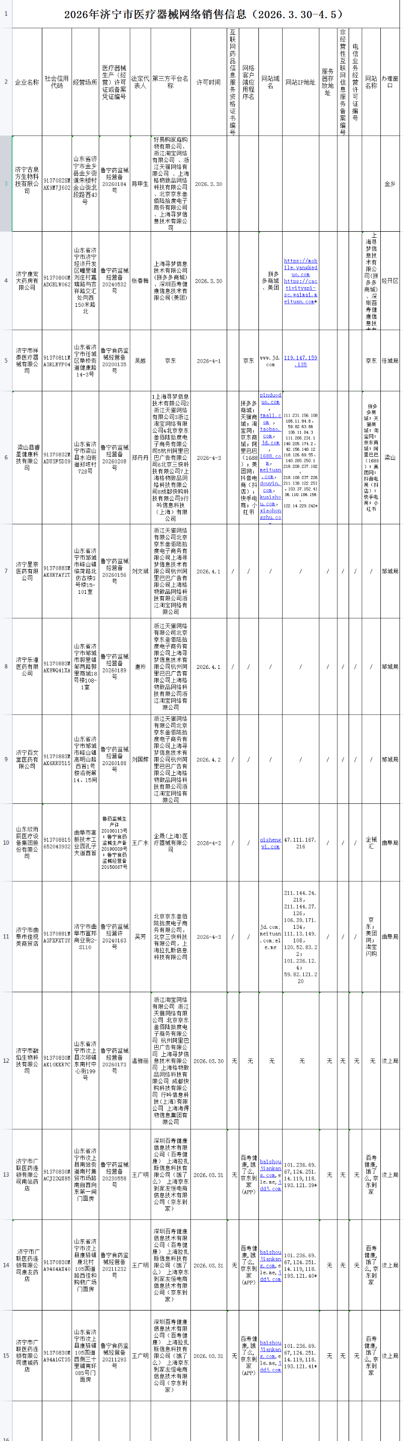 2026年济宁市医疗器械网络销售信息(2026.3.30-4.5)